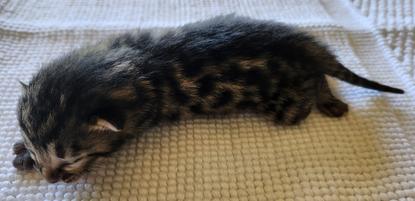 AvailableBengal Kitten photos ...six kittens born on St. Patricks day ! Two brown rosetted tabby, three lynx point and one charcoal! Parents are Candu and Alexander. These kittens have an awesome star studed pedigree laced with supreme grand champions-both grandfathers are supremes, there is huge show potential in these beautiful highly contrasted, heavily rosetted beauties. Kittens are being raised under foot in our home, very sweet and people friendly. You will get a sweet gorgeous Bengal !!! Please read our "Home" page to find out how to adopt a kitten from Tailwinds Cattery.